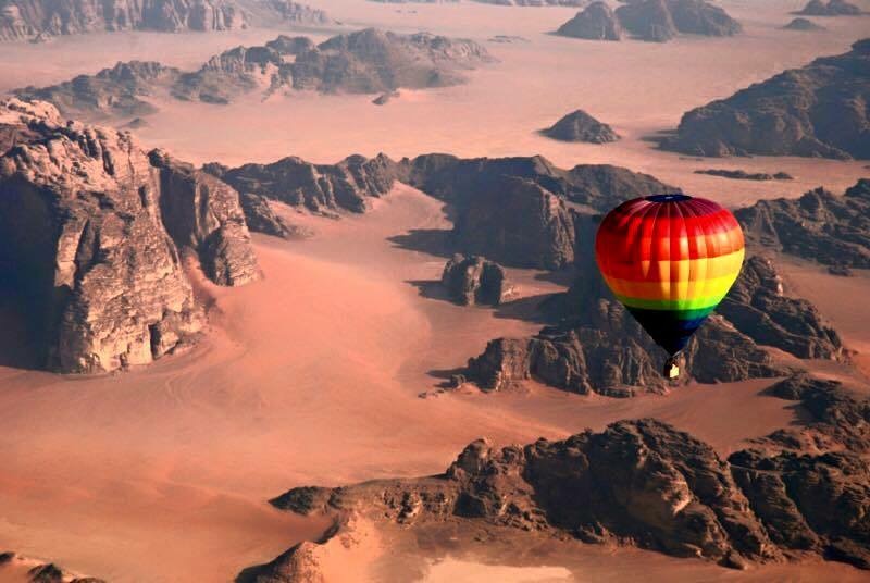 Take a bird’s eye view of the beautiful scenery of the majestic mountains in Wadi Rum by climbing into a hot air balloon.
