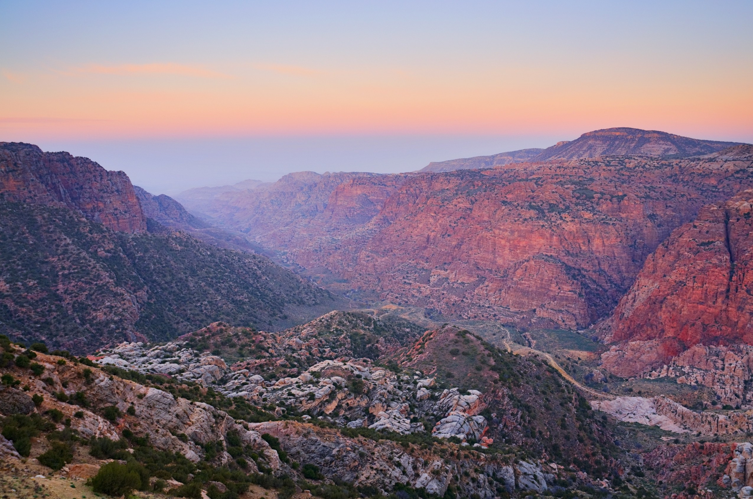 The rugged beauty and natural diversity of Dana make this nature reserve a worthwhile destination for visitors to Jordan. The reserve encompasses some of Jordan's most breathtaking scenery, stretching from the 1800-meter-high Sharaa Mountains in the east down to the dunes at Wadi Araba at sea level. As the Kingdom's sixth nature reserve, Dana protects all animals - including endangered species such as the ibex - from the ravages of hunting. Dana Nature Reserve hosts a wide variety of fauna, including ibex, mountain gazelle, fox, badger, porcupine, wolf, hyrax, striped hyena, jackal, and many others.